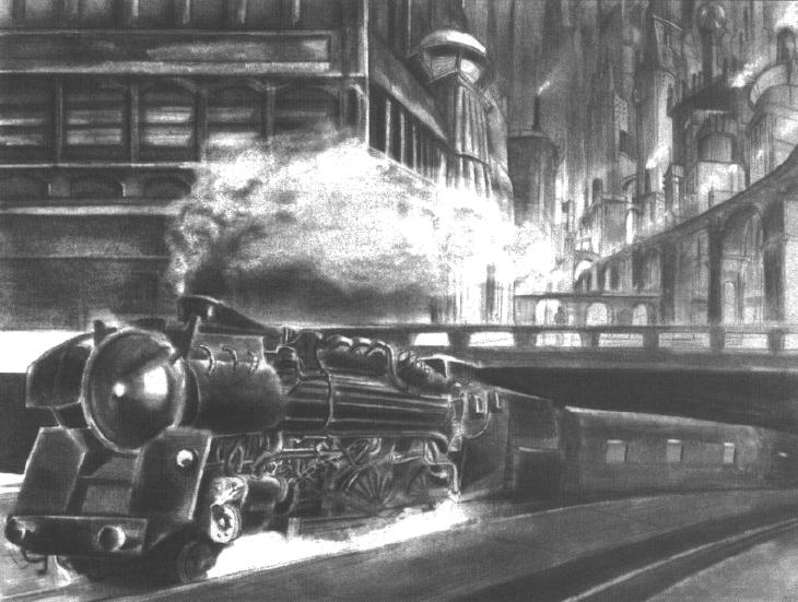 These are another legacy of the original Pioneers, a vast web of waterways that fan out from the polar icecaps. These, as much as the railways, have shaped Martian society. They irrigate the fertile Freedom Lands that surround the icecap and are the breadbasket of Mars. With the canals, Capitol has made the deserts bloom and transformed arid wilderness into one of the most productive areas on Mars. It was the vast land reclamation projects of the early Pioneers that made the settlement of much of present-day Mars possible. Following the disastrous series of South Martian Wars, many of the canals silted up, and in consequence, much of Southern Mars is now uninhabitable.
